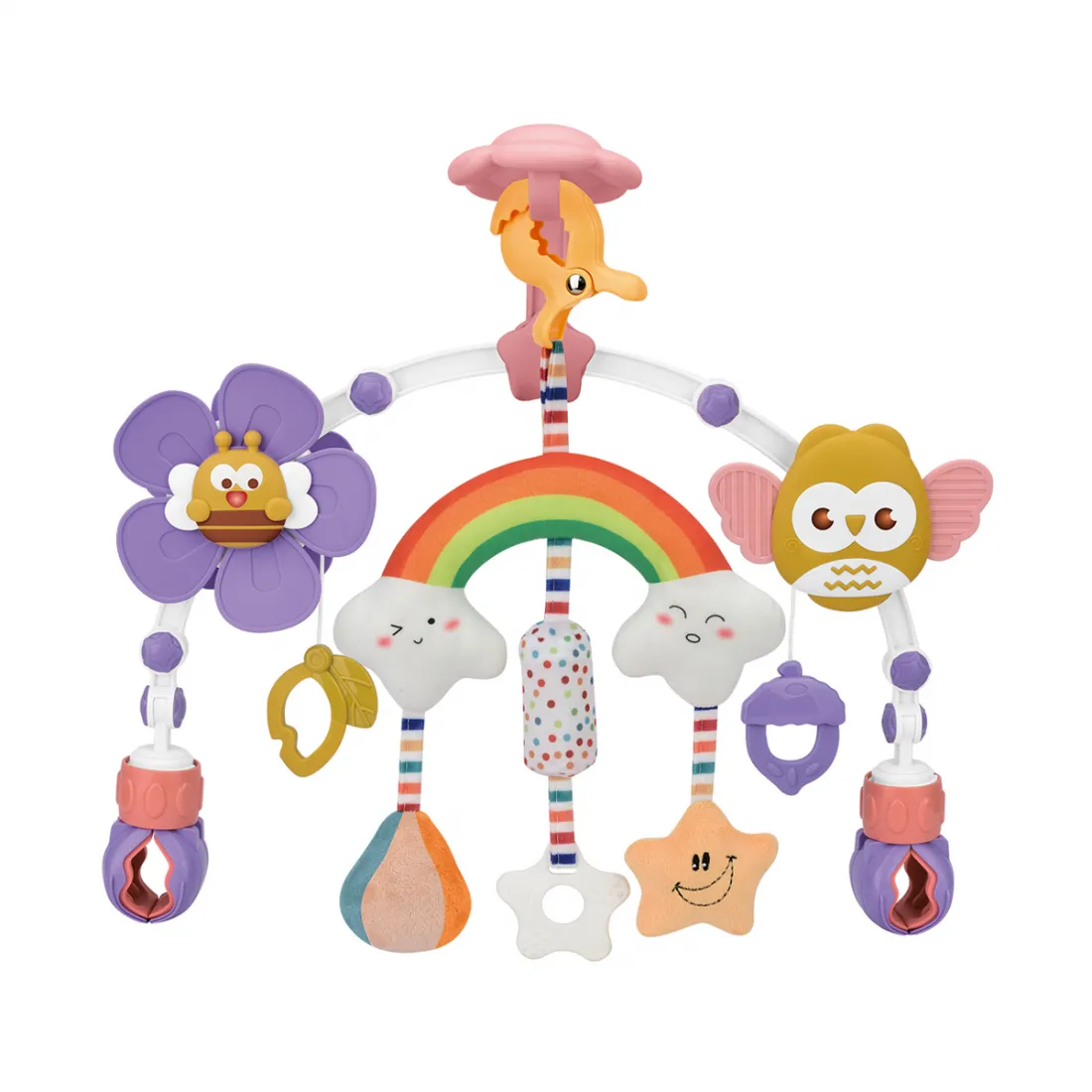 Clips ajustables y diseño plegable: el juguete de arco tiene dos grandes clips ajustables resistentes que son fáciles de fijar y ajustar. Fácilmente ajustable girando las tuercas en los clips, manteniendo los clips en su lugar de forma segura. El ángulo colgante del juguete de moisés se puede ajustar fácilmente para adaptarse al juguete dentro del campo de visión del bebé. Se pliega fácilmente en cualquier forma