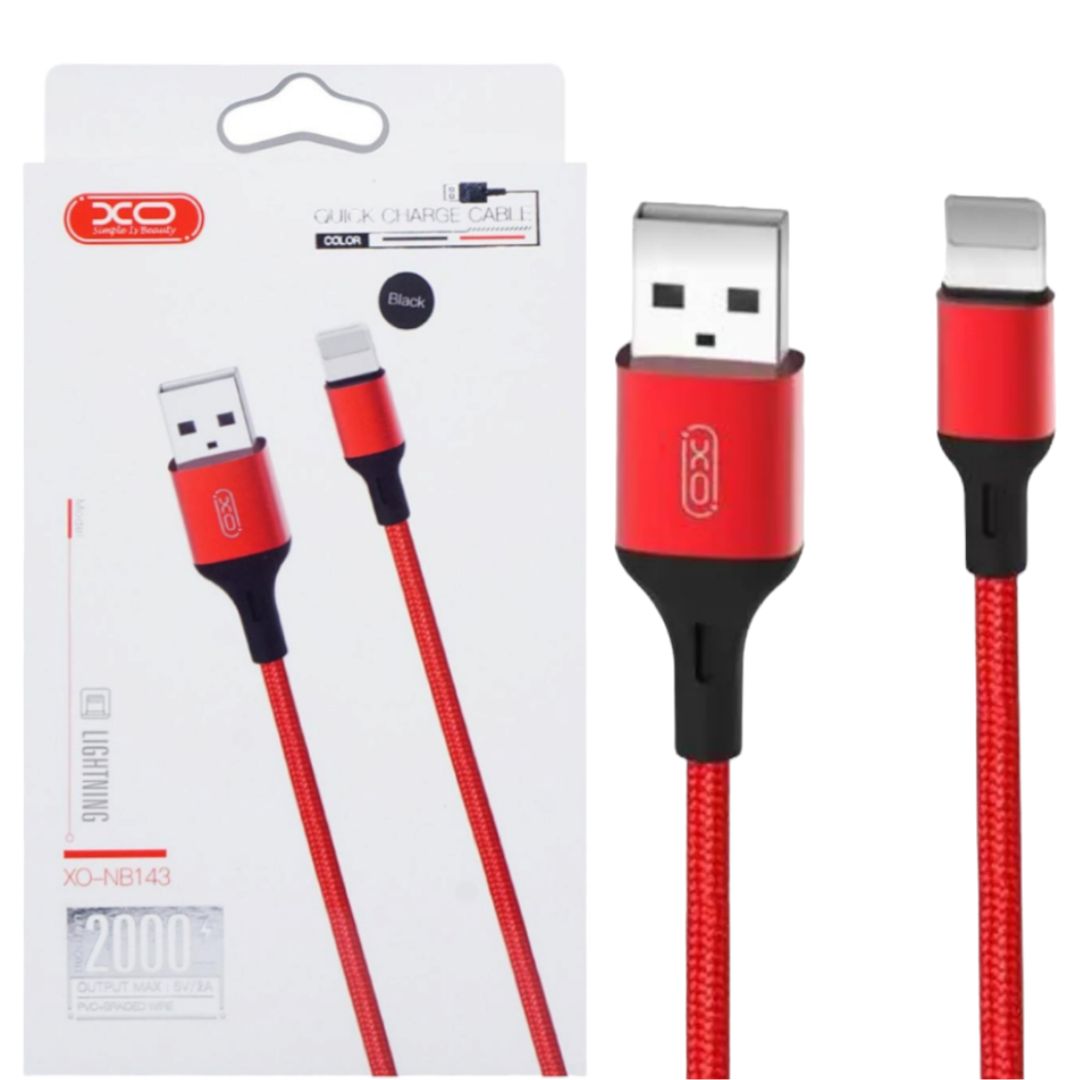 Cable Cargador 2 Metros 2A Forrado Salida USB entrada Lightning P/ Iphone Rojo XO-NB143 cantidad