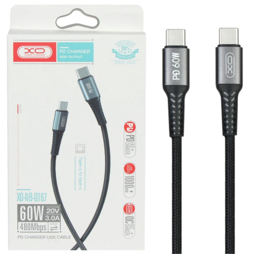 Cable Cargador Rapido 60W 3.0A 1M Forrado sallida Tipo C entrada Tipo C P/ Iphone Negro XO-NBQ167 cantidad