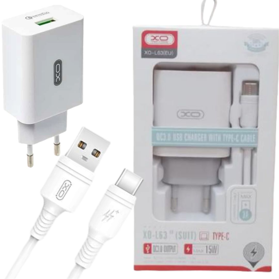 Cargador 3A 15W USB C/ Cable Micro 1M Blanco XO-L63
