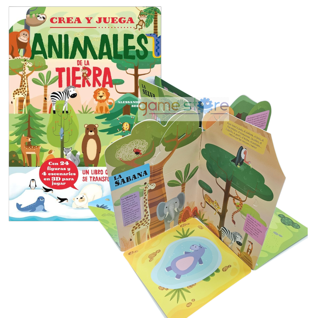 Un libro que se abre y se transforma con 24 figuras y 4 escenarios en 3D para jugar