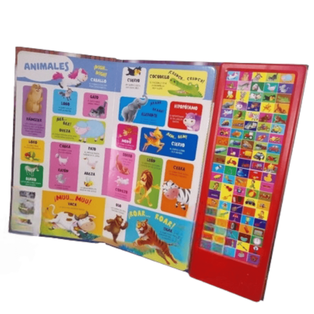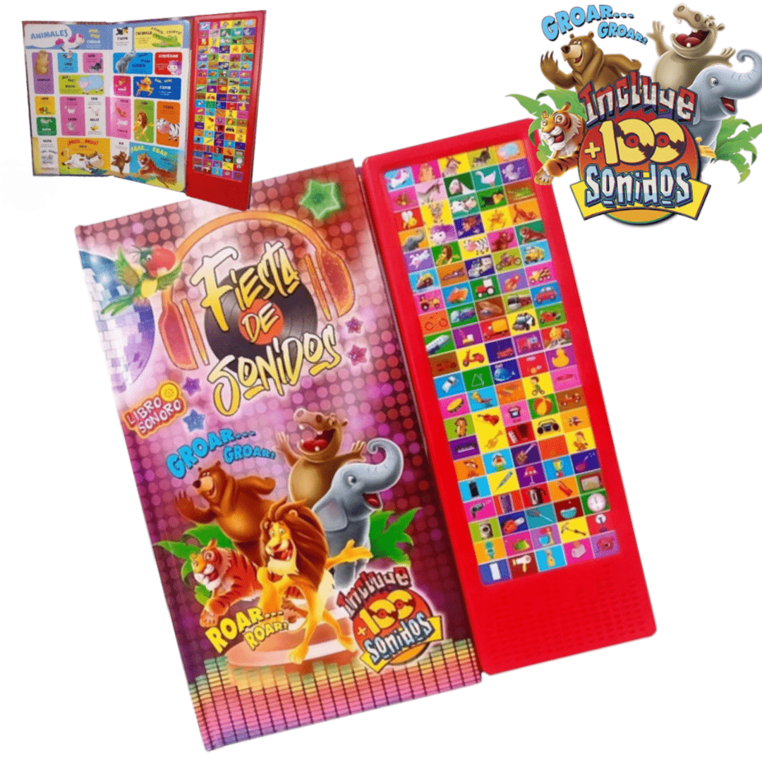Con divertido Libro, los niños descubrirán sonidos de animales, vehículos y objetos, para familiarizarse con su entorno por medio de todos sus sentidos