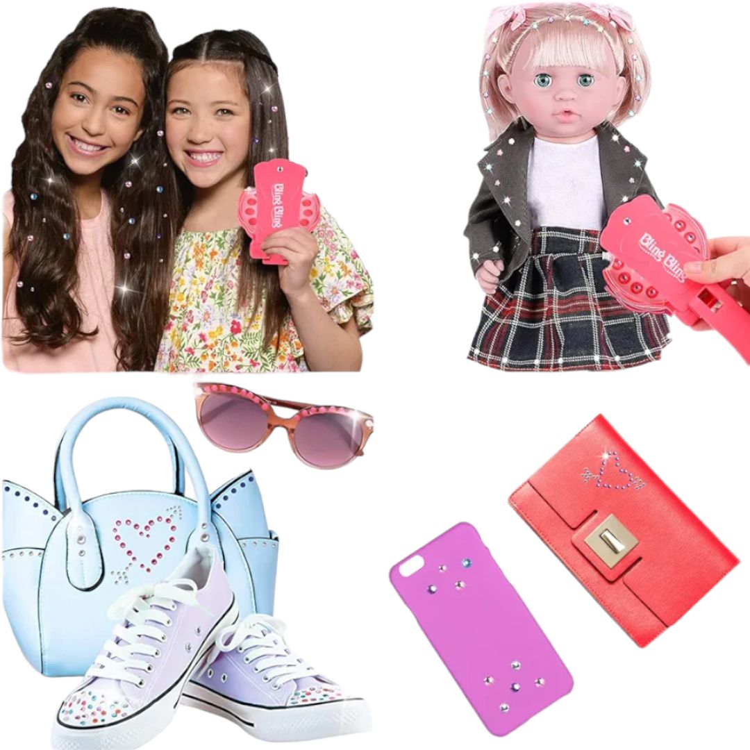 El juego de herramientas de peinado incluye 1 deslumbrador (máquina) para el cabello, y gemas para el cabello.