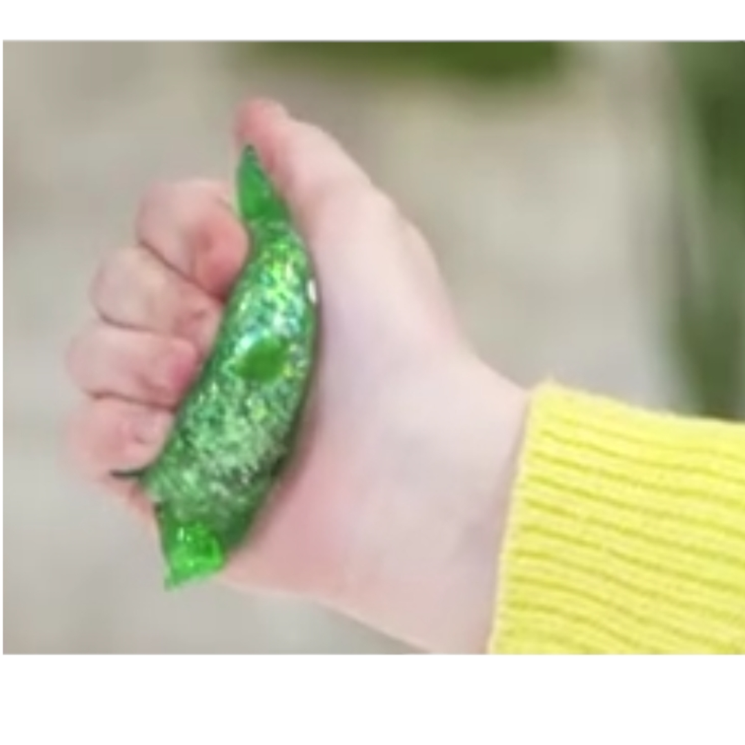 Son figuras misteriosas con purpurina (glitter) de 5 cm Diseñadas para jugar de forma sensorial, se pueden apretar y siempre vuelven a su forma original.