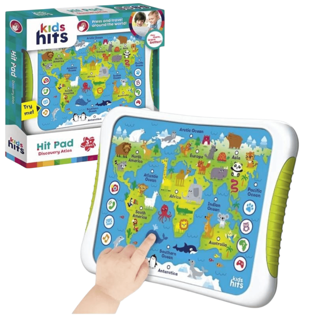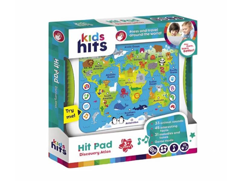 La forma conveniente, el diseño único y brillante con animales divertidos dibujados por un famoso artista, una gran cantidad de contenido educativo y juegos interesantes hacen de este Hit Pad uno de los juguetes más vendidos de todos los tiempos
