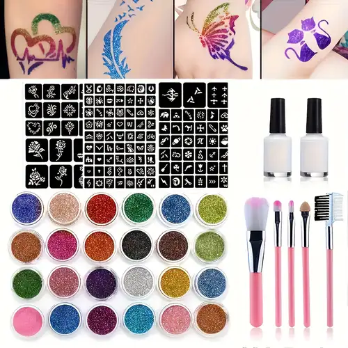 Puedes crear tatuajes brillantes en tu cara, mejillas, brazos y manos usando tus colores y patrones favoritos.