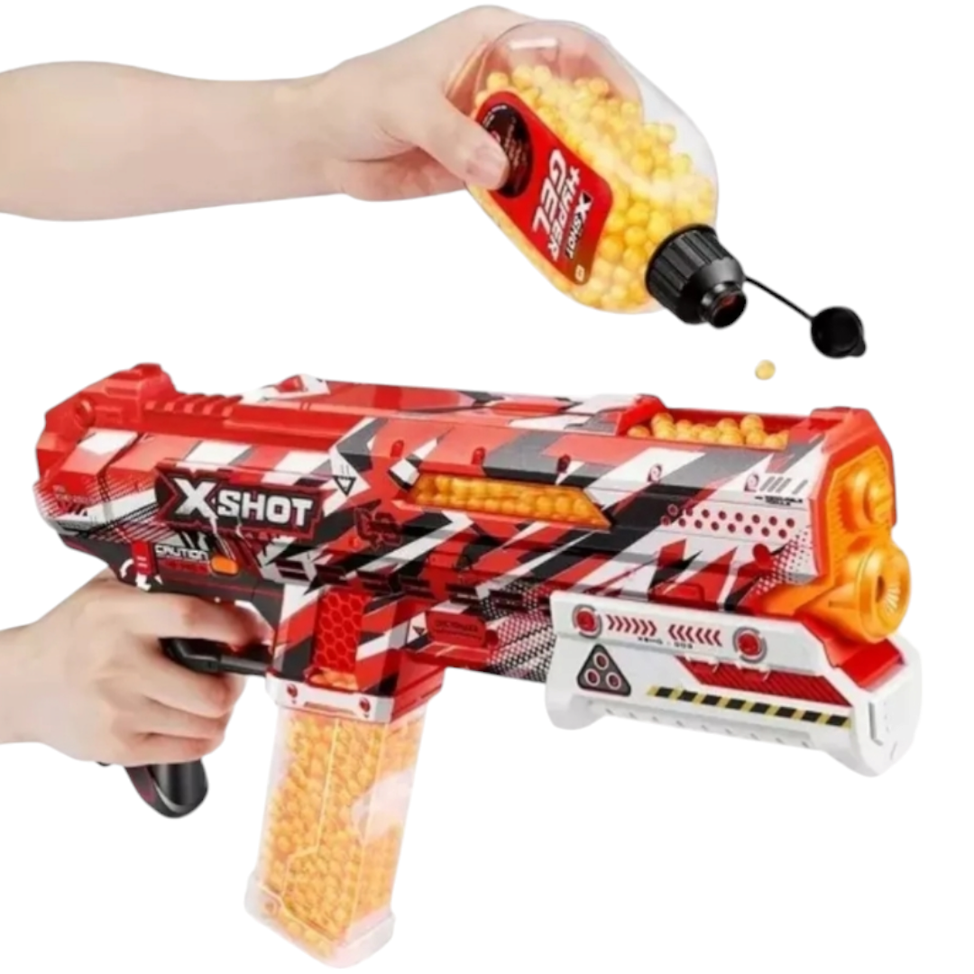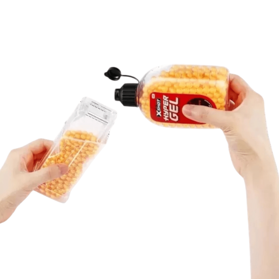 El X-Shot Hyper Gel Clutch puede lanzar Hyper Gel Pellets a 200 pies por segundo.