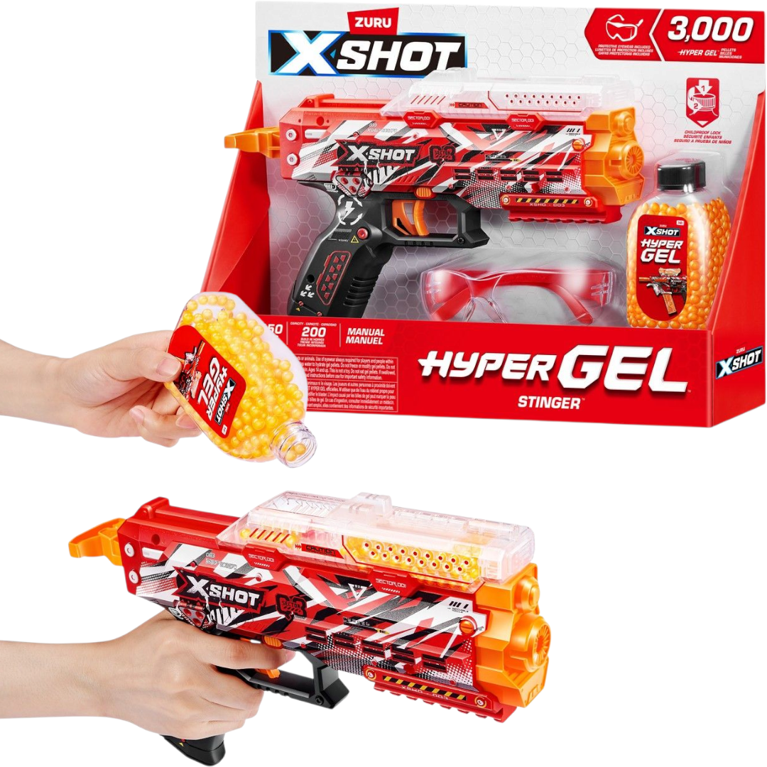 XShot Hyeprgel Stinger Pistola + Lentes + 3000 Bolitas de Gel