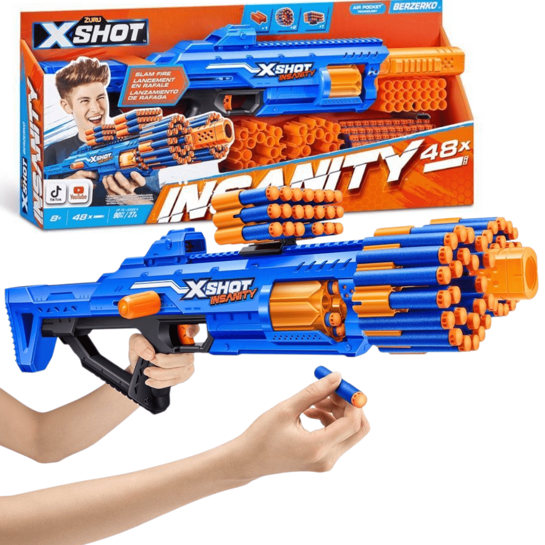 XShot Insanity Berzerko Escopeta + 48 Dardos + Tambores Porta Municiones Tambor Giratorio cantidad